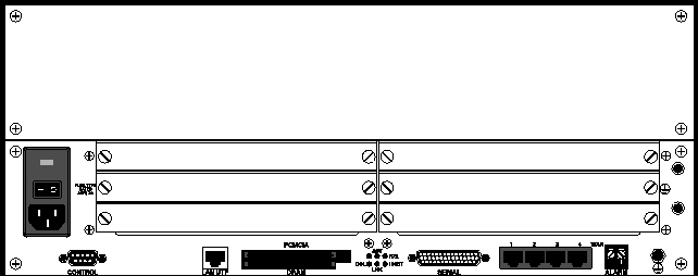 The Control port connects to a VT-100 terminal or modem to access and provides the menu-driven user interface to the MAX. It runs at 9600 bit/s (configurable through the user interface), 8 bits per character, no parity, no flow control, 1 stop bit. See Appendix C, "Cables and Connectors, "section User interface specifications for details on cables that connect to this port.