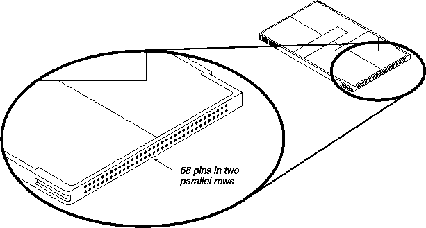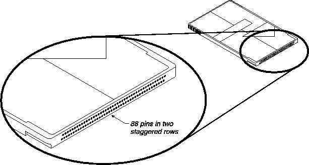The PCMCIA interface accepts a plug-in PCMCIA card. See Figure 1-13 on page 1-7.