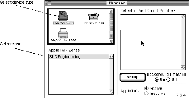 1. The AppleTalk workstation user opens the Macintosh Chooser.