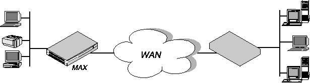 You associate bridge profiles with one Connection profile, which the MAX uses to bring up the connection to the specified node address. You specify a Connection profile by the unique portion of its number in the Connections menu. Example bridged connection