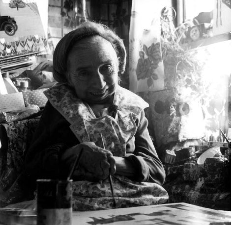 Maud Dowley was a shy, sensitive girl born with multiple birth defects near Yarmouth. She lived much of her life there, later moving to Marshalltown, a tiny community near Digby where she met and married Everett Lewis. Although her married years were spent in a tiny shack without electricity, running water or indoor plumbing, and although she was afflicted with increasingly painful physical disabilities, she nevertheless transcended the material circumstances of her life with a rich outpouring of bright, evocative paintings. In the one-room house where she lived for 32 years, with cardboard or particleboard as a canvas, household and marine paints for her sardine-tin palette, she painted radiant and joyful pictures, rich in their representation of rural life in Nova Scotia.