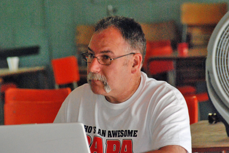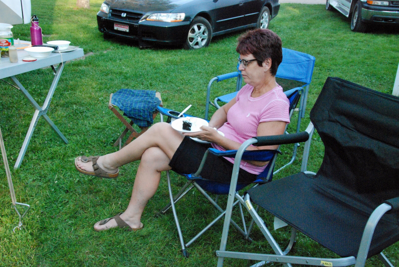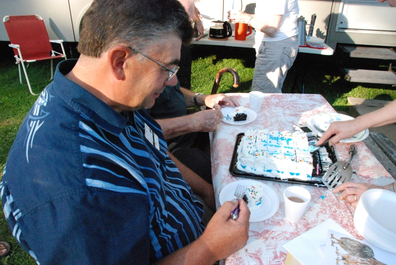 The Monday barbeque, featuring a birthday cake for Laurie Illsley.