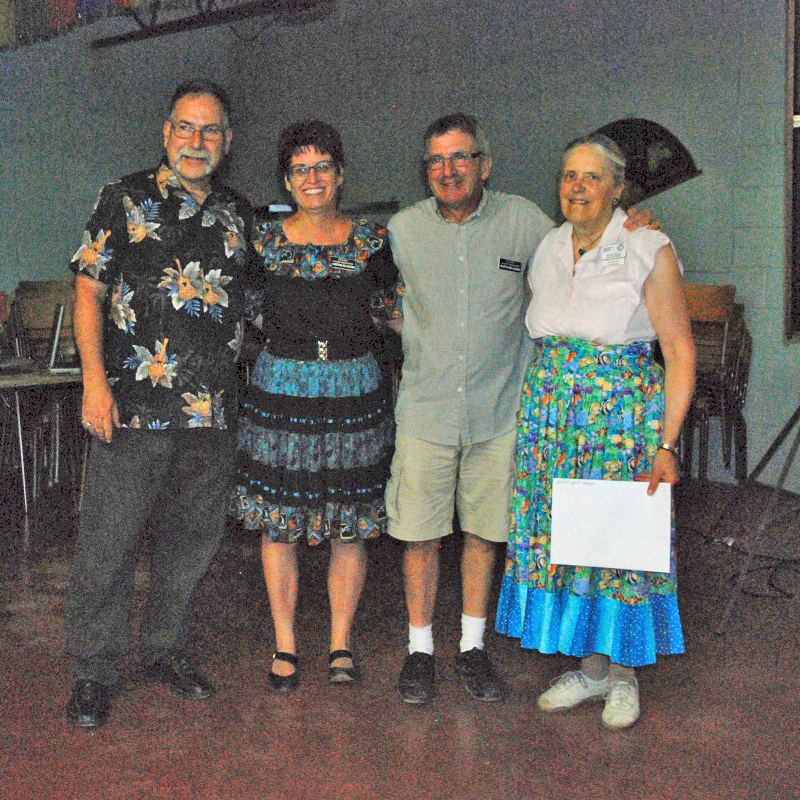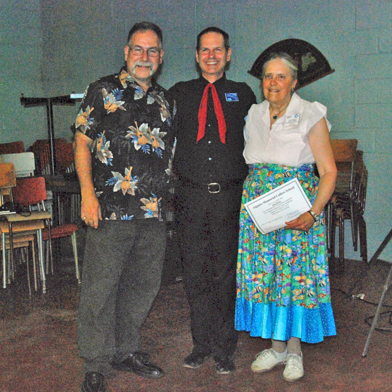 The 2015 Alguire Memorial Callers School was held at the Elm River Park Campground in Glenholme, with a class of nine enrolled. This year's staff included Nova Scotia callers Dottie Welch and Kerry Fletcher. The currriculum covered the full CALLERLAB recommended School Curriculum, with training levels customized for both new and experienced callers. In addition a two-day mini-school for round dance cuers was presented by Nova Scotia cuer couple Lionel and Janet Crowe.