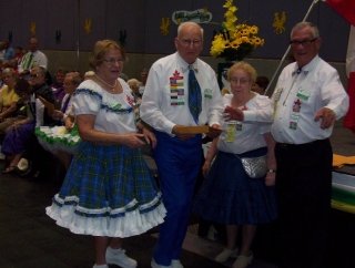 There was a very good turnout of NS dancers at the 16th National Convention in London ON in July. Several hundred registrations for F2010 were taken in London and more are coming in by mail. The F2010 demonstration dance put on by the 3 squares of NS dancers was very well received with a standing ovation in London.