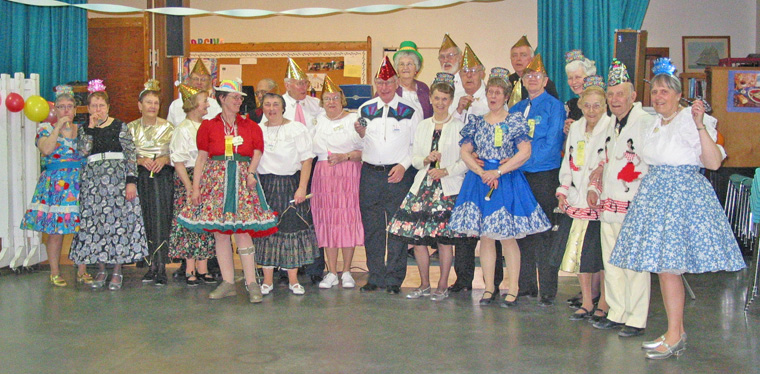 Some who have been off for surgery or sickness are returning and numbers are up this month. We still celebrate birthdays one night a month; that night we dance to all singing calls. The club still volunteers at the nursing homes around the area 1 - 2 times a month.