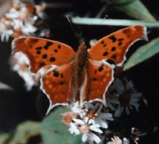 This Comma is found in the boreal zone of North America south of the tundra. There is a separate isolated population in the southern Appalachians. It is found in coniferous and mixed forests and along wood roads. The adults emerge late in the summer, hibernate and reproduce the following spring living 9-10 months. The larvae feed on willows, birches, alder, gooseberries and blueberries. The name derives from a silver comma-shaped marking on the underside of the hindwing.